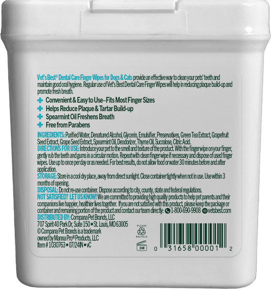 Introduce your pet to the smell and texture of the product. With the finger wipe on your finger, gently rub the teeth and gums in a circular motion. Repeat with clean finger wipe if necessary and dispose of used finger wipes. Use up to once per day or as needed. For best results allow no food or water 30 minutes before and after application.